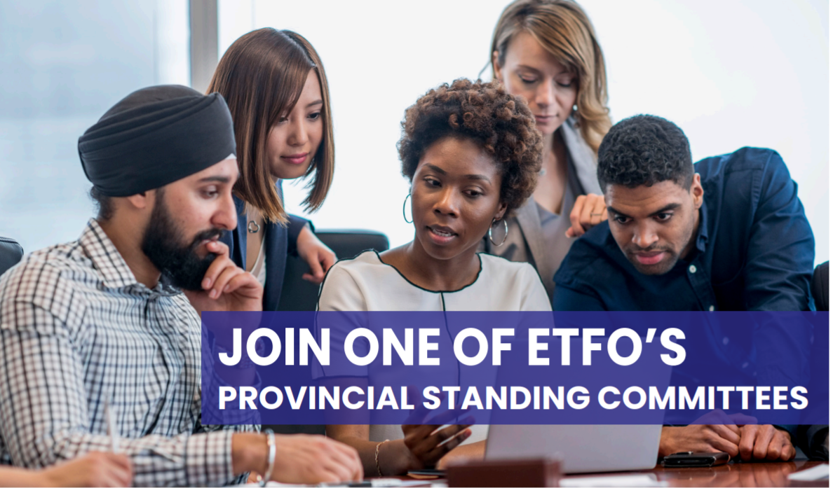 development of provincial policies, positions, programs, and initiatives. Vacancies for the 2022-2024 term are listed on the second page. Apply online at etfo.ca, About ETFO, Standing Committees. Deadline to apply, March 1, 2022.